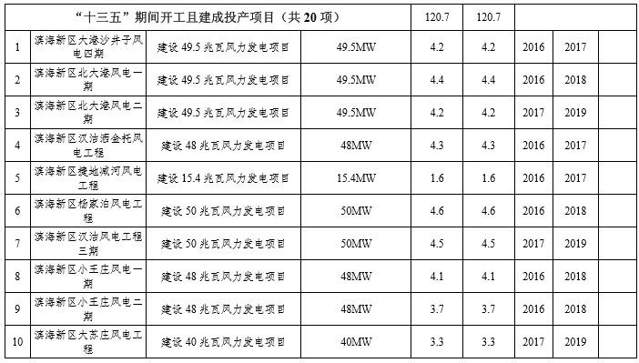 “十三五”期間,堅持陸上和海上并舉,優(yōu)化發(fā)展陸上風(fēng)電,穩(wěn)妥推進海上風(fēng)電;鼓勵對低風(fēng)速資源的開發(fā)利用,發(fā)展分布式小型風(fēng)電。根據(jù)地區(qū)資源稟賦,以濱海新區(qū)作為重點發(fā)展區(qū)域,重點推進北大港風(fēng)電場工程(一期裝機4.95萬千瓦,二期裝機4.95萬千瓦)、大港沙井子風(fēng)電場工程(四期裝機4.95萬千瓦)、大港大蘇莊風(fēng)電場工程(裝機4萬千瓦)、大港捷地減河風(fēng)電場工程(裝機1.54萬千瓦)、漢沽灑金坨風(fēng)電場工程(裝機4.8萬千瓦)、大港小王莊風(fēng)電場工程(一期裝機4.8萬千瓦、二期裝機4.8萬千瓦)、漢沽楊家泊風(fēng)電場工程(裝機5萬千瓦)、漢沽三期風(fēng)電場工程(裝機5萬千瓦)、漢沽大神堂風(fēng)電場工程(二期裝機5萬千瓦,三期裝機5萬千瓦)、靜海西雙塘風(fēng)力發(fā)電場工程(一期裝機4.8萬千瓦,二期裝機5萬千瓦)等陸上風(fēng)電和南港海上風(fēng)電場工程(一期裝機9萬千瓦,二期裝機10萬千瓦)、大港馬棚口海上風(fēng)電場工程(裝機10萬千瓦)建設(shè)。到2020年,全市風(fēng)電裝機總規(guī)模達到116萬千瓦。