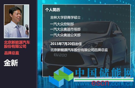 中國儲能網(wǎng)訊:憑借在公共服務領域及私人消費市場的雙重發(fā)力,北汽新能源純電動汽車2015年1-6月銷量達到6216輛,同比增長1493.85%,位列國內(nèi)純電動車銷量排行首位。未來,北汽新能源把目標定位國內(nèi)第一,國際領先的新能源汽車制造商,若想取得這樣的成績,離不開產(chǎn)品的宣傳以及客戶服務。近日,網(wǎng)通社從北汽新能源官方了解到:原一汽大眾奧迪公關(guān)經(jīng)理金新現(xiàn)已加盟北汽新能源,任北汽新能源品牌總監(jiān)一職,而原品牌總監(jiān)胡恩平調(diào)任華南事業(yè)部總經(jīng)理。