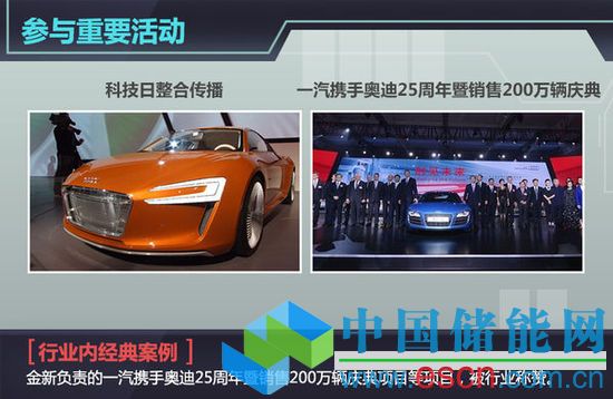 金新自畢業(yè)就進入一汽大眾工作,見證了一汽大眾在華輝煌的發(fā)展歷程。其中,在就職一汽大眾奧迪銷售事業(yè)部公關(guān)部公關(guān)經(jīng)理時,其負責的“科技日整合傳播”、“一汽攜手奧迪25周年暨銷售200萬輛慶典”等項目,被行業(yè)稱贊,成為經(jīng)典案例。正是因其高水平的工作能力,以及對整個汽車行業(yè)的理解較為透徹,被北汽新能源所看重,擔任北汽新能源品牌總監(jiān)。