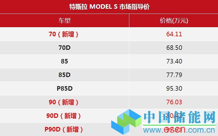 中國(guó)儲(chǔ)能網(wǎng)訊:日前從官方獲悉,特斯拉為了滿足不同消費(fèi)者的需求,于近日再次推出了四款車型,包括最入門的Model S 70車型,以及包括90、P90以及P90D在內(nèi)的三款90車型。新車市場(chǎng)指導(dǎo)價(jià)64.11-97.93萬(wàn)元。