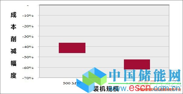 上圖顯示的是位于澳大利亞昆士蘭州某太陽能園區(qū)項(xiàng)目的估算成本節(jié)約。如圖所示,采用250MW規(guī)模的太陽能園區(qū)為基線情形,舉例說明,規(guī)模從250MW擴(kuò)大到500MW,整個(gè)園區(qū)設(shè)施建設(shè)的單位成本降幅為35- 45%,而從250MW擴(kuò)大到1000MW的規(guī)模,整個(gè)園區(qū)設(shè)施建設(shè)的單位成本降幅為50-60%,相對(duì)應(yīng)的單位發(fā)電成本降幅分別是12-15%和14-18%。 在該示例中,整個(gè)園區(qū)設(shè)施建設(shè)其中包括了電網(wǎng)建設(shè)的初投資單位成本,并非只是園區(qū)內(nèi)電站建設(shè)所需其它設(shè)施的建設(shè)成本。