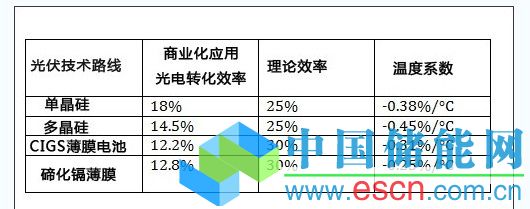 對(duì)于光伏而言,溫度過(guò)高將直接影響光伏電池板的輸出功率。下表是光伏系統(tǒng)廠商First Solar提供的各種光伏發(fā)電系統(tǒng)的溫度系數(shù),溫度系數(shù)表征了溫度每升高1℃對(duì)系統(tǒng)發(fā)電輸出功率的影響。
