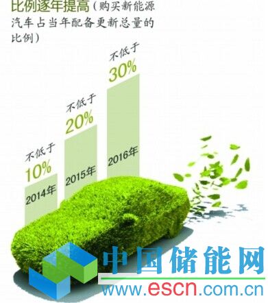 稍后,國家機關(guān)事務管理局、財政部等聯(lián)合公布《政府機關(guān)及公共機構(gòu)購買新能源汽車實施方案》,要求2014年中央國家機關(guān)以及納入新能源汽車推廣試點城市的政府機關(guān)和公共機構(gòu),購買的新能源汽車占當年配備更新總量的比例不低于10%,2015年不低于20%,2016年不低于30%,以后逐年提高。