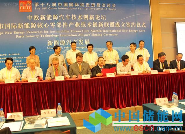 中國儲能網(wǎng)訊:第18屆中國國際投資貿(mào)易洽談會(下稱投洽會),于2014年9月8日-11日在福建廈門舉辦。投洽會期間,中歐企業(yè)為班底的廈門市國際新能源核心零部件產(chǎn)業(yè)技術(shù)創(chuàng)新聯(lián)盟成立,簽約儀式于9月9日下午舉行。由此,國內(nèi)首個由企業(yè)自發(fā)形成的新能源汽車核心零部件產(chǎn)業(yè)的跨國聯(lián)盟正式成立,也標志這中德新能源汽車合作項目從政府意向?qū)用嬲嬲M入企業(yè)操作層面。