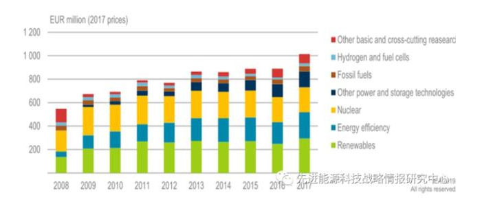 圖4 2010-2017年德國(guó)能源技術(shù)的公共研發(fā)支出(單位:百萬(wàn)歐元)
