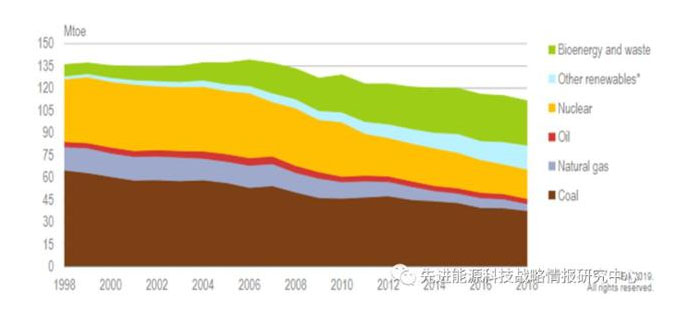 圖3 1998-2018年德國(guó)能源生產(chǎn)情況(單位:百萬(wàn)噸油當(dāng)量)