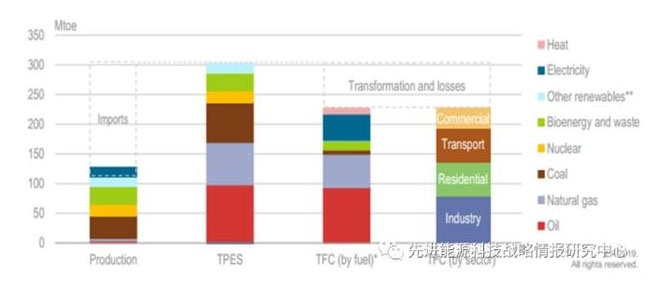 圖2 2018年德國(guó)能源供應(yīng)和消費(fèi)情況(單位:百萬(wàn)噸油當(dāng)量)