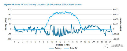電池存儲系統(tǒng)已經(jīng)在加州提供了靈活的斜坡服務(wù)。CAISO在其網(wǎng)站上實時監(jiān)控一些已安裝電池的調(diào)節(jié)情況。雖然這些數(shù)據(jù)并沒有清楚地顯示電池實際提供的服務(wù),但它們有助于了解電池運行如何響應(yīng)市場信號,以及電池如何與光伏發(fā)電交互影響。