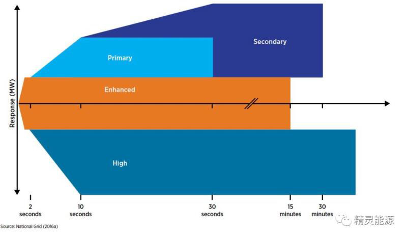 在這方面,英聯(lián)邦的系統(tǒng)運營商國家電網(wǎng)開發(fā)了EFR相關(guān)產(chǎn)品,也可定義為一種動態(tài)服務(wù),這種EFR產(chǎn)品的功率可隨著系統(tǒng)頻率的變化而成比例地變化。EFR服務(wù)是專門為能量存儲而創(chuàng)建的,一旦頻率超過閾值(可以是“0.05赫茲”(服務(wù)1,寬帶)或“0.015赫茲”(服務(wù)2,窄帶),則需要在1秒內(nèi)作出響應(yīng)。