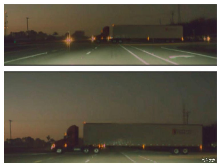 『卡車進(jìn)入路口;圖像來自特斯拉Model 3』