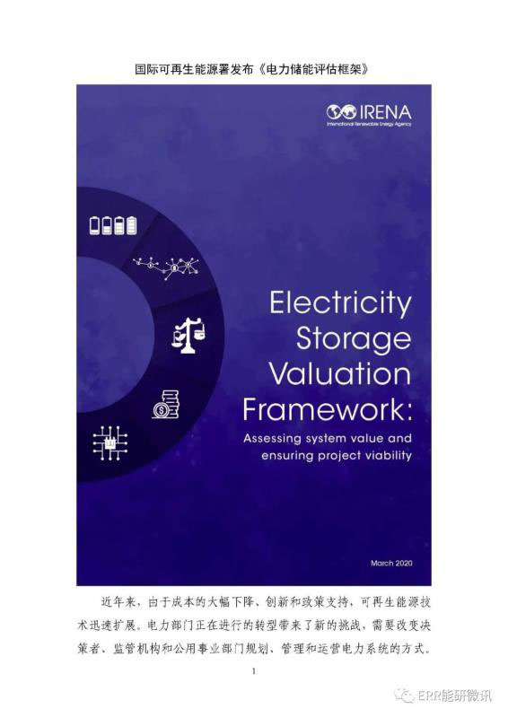 國(guó)際可再生能源署發(fā)布《電力儲(chǔ)能評(píng)估框架》