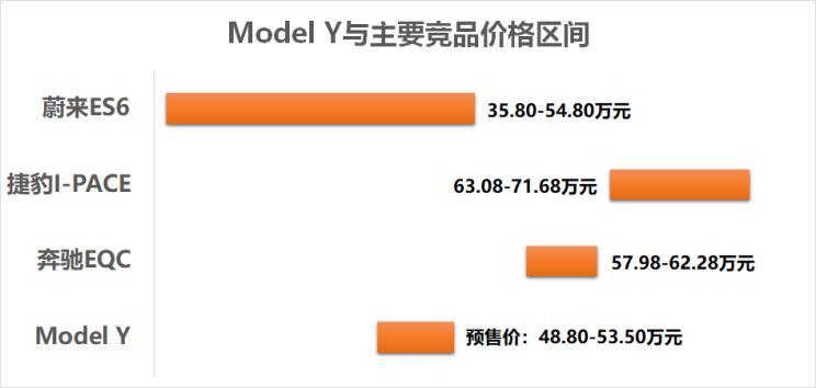 好在目前純電動(dòng)中型SUV這個(gè)細(xì)分市場(chǎng)的競(jìng)爭(zhēng)并不激烈,綜合價(jià)格和級(jí)別來(lái)看,Model Y面臨的主要競(jìng)爭(zhēng)對(duì)手是奔馳EQC、捷豹I-PACE、寶馬iX3(目前未上市,且無(wú)預(yù)售價(jià)格)、蔚來(lái)ES6等。從價(jià)格上看,Model Y占據(jù)一定優(yōu)勢(shì),僅蔚來(lái)ES6起售價(jià)比Model Y預(yù)售價(jià)格更低,但后者的預(yù)售價(jià)區(qū)間也被前者完全包括。這主要是源于Model Y與Model 3上驚人的零部件通用率產(chǎn)生的規(guī)模效應(yīng),而且考慮到特斯拉上海超級(jí)工廠生產(chǎn)成本比國(guó)外低65%(特斯拉官方宣布的Model 3生產(chǎn)成本對(duì)比),以及無(wú)鈷電池在未來(lái)逐漸應(yīng)用,Model Y國(guó)產(chǎn)后售價(jià)有可能和Model 3一樣進(jìn)一步下調(diào)。