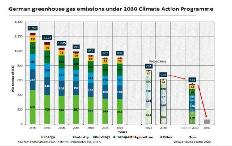 在應(yīng)用生態(tài)研究所(ko-Institut)的主持下進(jìn)行的分析發(fā)現(xiàn):“根據(jù)當(dāng)前的氣候行動(dòng)計(jì)劃,將無(wú)法實(shí)現(xiàn)2020年和2030年的氣候目標(biāo)?!闭兄Z在2019年9月啟動(dòng)該計(jì)劃后,將對(duì)其有效性進(jìn)行獨(dú)立評(píng)估。該計(jì)劃中的措施,例如運(yùn)輸和供暖的國(guó)家碳價(jià),電動(dòng)汽車的大規(guī)模推廣以及平行煤電等,到2030年逐步淘汰二氧化碳的排放量應(yīng)從2018年的858噸減少至5.43億噸。但是,研究發(fā)現(xiàn),減排量實(shí)際減少約7000萬(wàn)噸。
