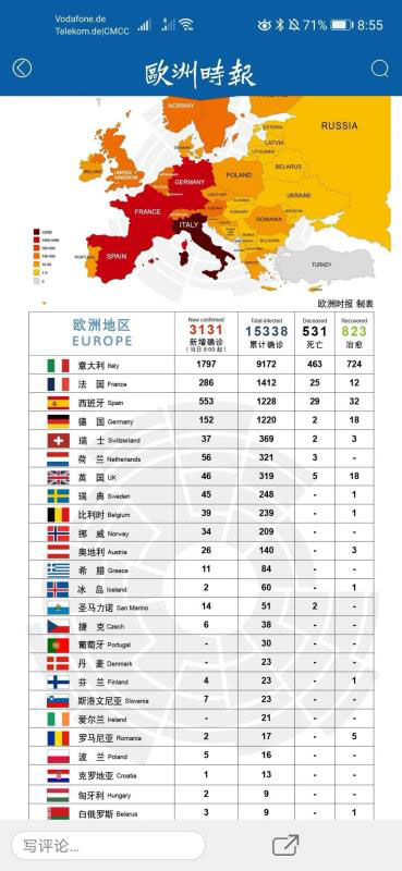 但是,新冠疫情這只“黑天鵝”在肆意“禍害”國內(nèi)汽車市場、基本得以控制住后,現(xiàn)已逐步蔓延至歐洲市場。歐洲接下來的電動化之路,是否會如今年開年的國內(nèi)市場“暴跌”乃至“一度停擺”?現(xiàn)實面前,讓人疑慮。以下是3月9日歐洲時報公布的歐洲諸國疫情實況:
