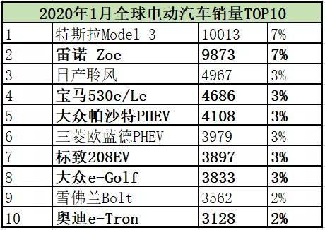 歐洲電動化全面提速還體現(xiàn)在各個車企的表現(xiàn)上。以1月為例,該月電動汽車銷量前十的車型有6款來自歐洲(下圖)。與國內(nèi)新能源汽車開年以來狂跌的情況,可謂形成鮮明對比。
