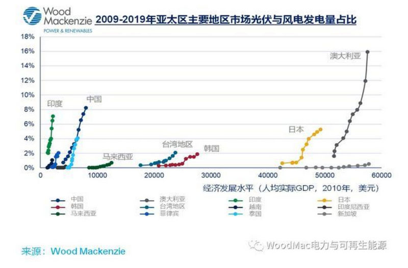 地緣政治的緊張態(tài)勢對于亞太電力市場發(fā)展有一定的積極意義。中美貿(mào)易戰(zhàn)為亞太其他區(qū)域的發(fā)展創(chuàng)造了投資機遇。例如,中國和美國的光伏組件制造商將產(chǎn)能轉(zhuǎn)移到東南亞,令東南亞制造業(yè)成為受益者。
