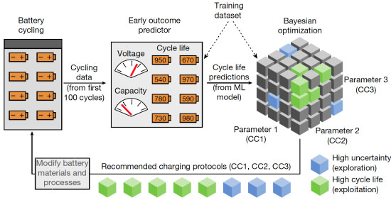 機(jī)器學(xué)習(xí)減少了他們必須測試的方法的數(shù)量。計(jì)算機(jī)沒有平等地測試每種可能的充電方法,也不是依靠直覺來測試,而是從其經(jīng)驗(yàn)中學(xué)到了可以快速找到最佳測試協(xié)議。