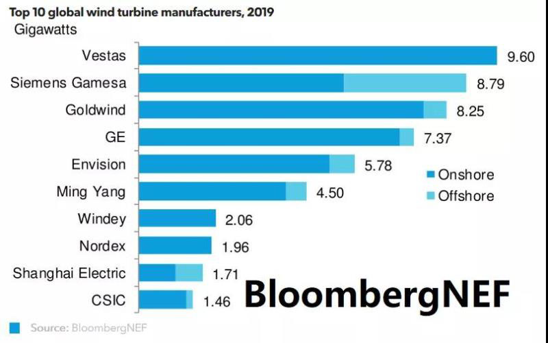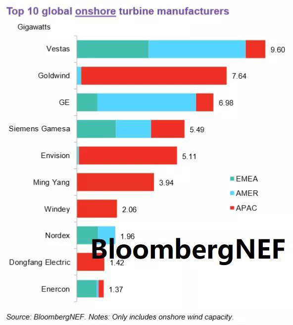 除此之外,明陽智慧能源,運達風電,Nordex,東方電氣,Enercon分別位列全球第六至第十。