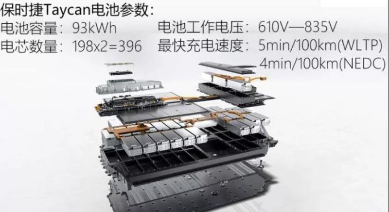 如圖3所示,保時(shí)捷Taycan的雙層蓄電池包容量93KWh,綜合續(xù)航里程463公里。理想狀態(tài)下,Taycan Turbo S車型通過(guò)最大270千瓦的充電功率,在22分30秒內(nèi)即可將電量從5%補(bǔ)充到80%。