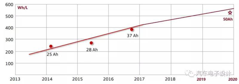 PHEV電芯的發(fā)展速度其實(shí)比較慢,從25Ah、28Ah到37Ah,再下一步走增加能量,我們從緊湊型轎車Volt 的EREV的成本來看并不是很理想,這條路徑并不是往前走的。原來的考慮角度,是按照Wh/L的能量密度發(fā)展的,接下來在滿足要求下往成本方向考慮。