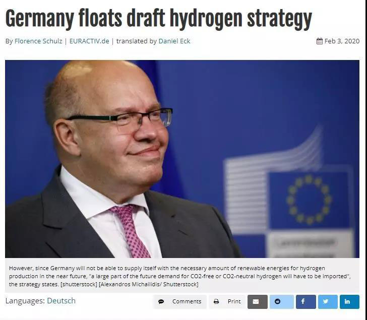 德國(guó)經(jīng)濟(jì)部長(zhǎng)彼得·阿爾特邁爾(Peter Altmaier)主導(dǎo)制定的國(guó)家氫戰(zhàn)略草案已經(jīng)送交德國(guó)多個(gè)部委征求意見(jiàn),力爭(zhēng)到2030年德國(guó)至少20%的氫將由可再生能源生產(chǎn),即所謂的綠色氫。