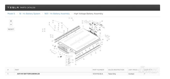 ▲特斯拉零件目錄網(wǎng)站中可以看到這款電池