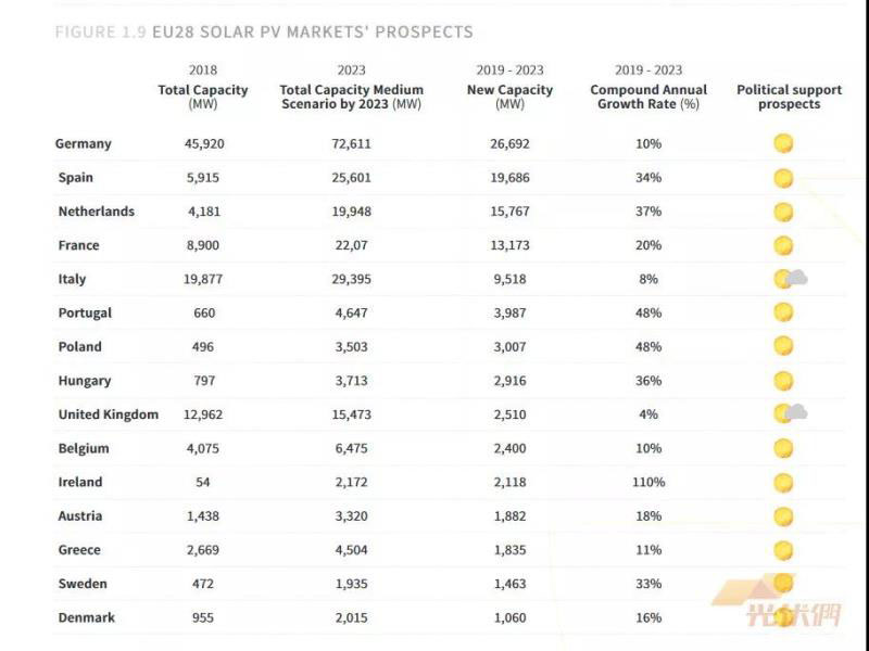 圖表:歐盟28成員國(guó)新增光伏裝機(jī)預(yù)測(cè)(2019-2023)來(lái)源:Solar Power Europe