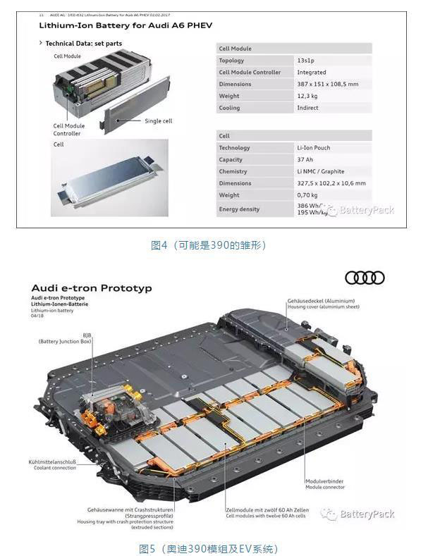 如圖4-圖9所示,390和590型號(hào)模組差別主要是單體電池的尺寸和制造工藝有差別。