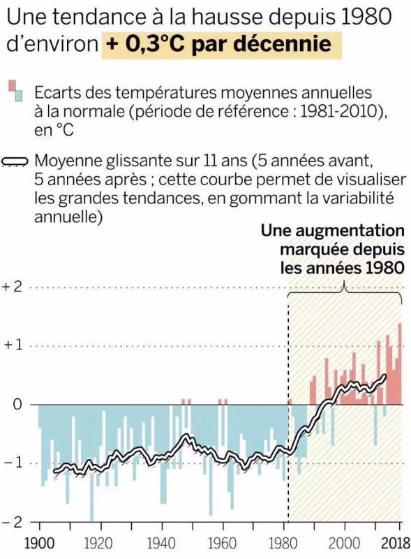 世界氣象組織發(fā)布報(bào)告,2019年1月至10月期間的全球平均氣溫溫度與工業(yè)前時(shí)期相比,上升1.1℃。世界氣象組織指出,“面對全球變暖,我們沒有時(shí)間了”,1980年以來,每10年上升0.3°C,2010-2019年“幾乎肯定”是歷史上最熱的10年。按目前的趨勢,到本世紀(jì)末氣溫可能會上升到4°C或5°C。即使各國履行其目前在2015年的《巴黎協(xié)定》下的承諾,全球平均氣溫升幅也將超過3°C,控制溫升不超過1.5-2°C的目標(biāo)難以實(shí)現(xiàn)。