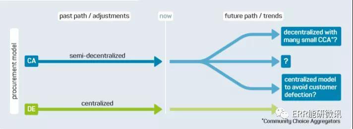 可再生能源采購。兩個地區(qū)很好的過渡了可再生能源作為外來技術的時期,現(xiàn)在面臨著將大規(guī)??稍偕茉吹碾娏ο到y(tǒng)融合。分配問題,例如我們在哪里建廠以及如何分配政策成本,變得更加重要。德國依靠集中采購模式。在加利福尼亞的分散管理方法中,不受監(jiān)管的社區(qū)選擇匯總器的出現(xiàn)逐漸地導致客戶流失。接下來,加州面臨著一個選擇:要么嘗試調整其可再生能源政策,以適應分散的電力市場環(huán)境,要么通過一個更加集中的機制集中其采購決策,這種機制再次從個體零售供應商手中奪走了自由裁量權。趨勢概述見圖ES-3,具體說明詳見第4.2節(jié)。