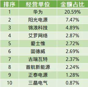 從企業(yè)出口金額看,華為、陽光電源、錦浪科技位列出口金額前三甲,10月出口金額均超過1000萬美元,三家企業(yè)占出口總額比重達(dá)到33%。