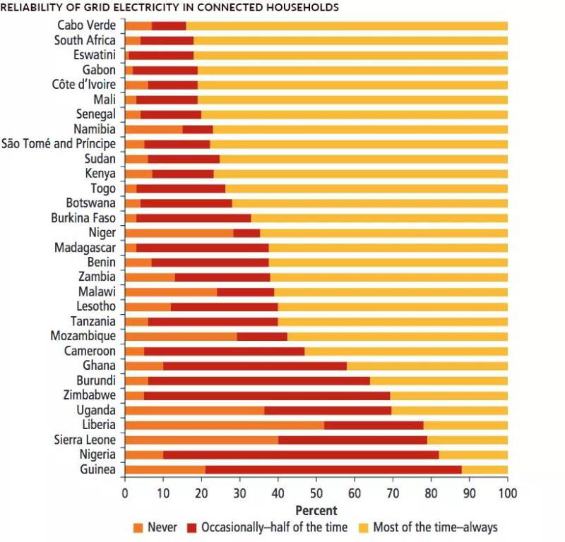 在有電網(wǎng)的地方,不穩(wěn)定還會(huì)引起其他問(wèn)題。最近的一項(xiàng)調(diào)查發(fā)現(xiàn),大多數(shù)尼日利亞科技公司每月面臨30次或更多的停電,并且超過(guò)一半的人將電力視為開(kāi)展業(yè)務(wù)的“主要”或“嚴(yán)重”限制。