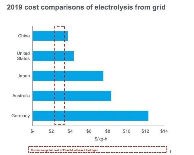 伍德麥肯茲(Wood Mackenzie)最近的一份分析報(bào)告預(yù)測,主要由太陽能電解生產(chǎn)的綠色氫,到2030年將在澳大利亞、德國和日本達(dá)到成本平價(jià)(cost parity)。