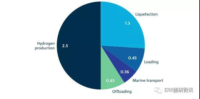 向日本運(yùn)送液化氫的成本,按澳元每公斤計(jì)算(CSIRO路線圖中2025年的數(shù)據(jù))