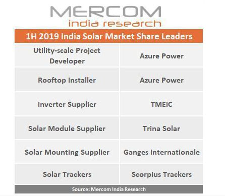 印度企業(yè)Scorpius Trackers是2019年上半年印度市場太陽能跟蹤器的頂級供應(yīng)商。同期,太陽能安裝結(jié)構(gòu)的最大供應(yīng)商是恒河國際(Ganges Internationale),其次是Purshotam Profiles和Strolar。