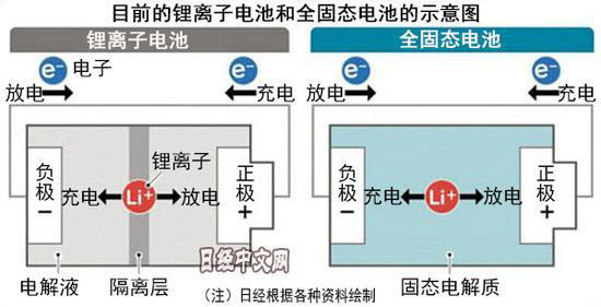 據(jù)日本經(jīng)濟(jì)新聞中文網(wǎng)10月31日消息稱,全固態(tài)電池是鋰離子電池的一種,在鋰離子來回移動的通道上采用固態(tài)電解質(zhì),取代現(xiàn)有電池的電解液。現(xiàn)有電池的電解液采用有機(jī)溶劑類材料,存在起火的可能性,在安全性上存在問題。全固態(tài)電池不使用可燃性電解液,安全性更高。全固態(tài)電池還無需被稱為隔離層的零部件,能減少零部件個數(shù),降低制造成本。通過避免使用液體,克服了鋰離子電池充放電過程中離子溶出的問題,有助于延長使用壽命。