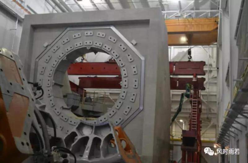這些機(jī)艙試驗(yàn)臺(tái)架都具備加載試驗(yàn)、加速壽命試驗(yàn)、模擬并電網(wǎng)試驗(yàn)、風(fēng)電主控系統(tǒng)實(shí)時(shí)仿真試驗(yàn)等功能。并已在新機(jī)型研發(fā)中發(fā)揮著重要作用,2013年7月英國NAREC利用15兆瓦機(jī)艙試驗(yàn)臺(tái)對韓國三星6兆瓦的海上風(fēng)電機(jī)組進(jìn)行了試驗(yàn),2014年GE公司在克萊姆森大學(xué)風(fēng)電研究中心進(jìn)行6兆瓦風(fēng)機(jī)的臺(tái)架試驗(yàn)。2019年6月GE公司把最新研制的Haliade-X 12MW機(jī)艙和107米長的葉片運(yùn)往英國,在海上再生能源實(shí)驗(yàn)室(ORE)的機(jī)艙試驗(yàn)臺(tái)上進(jìn)行測試。