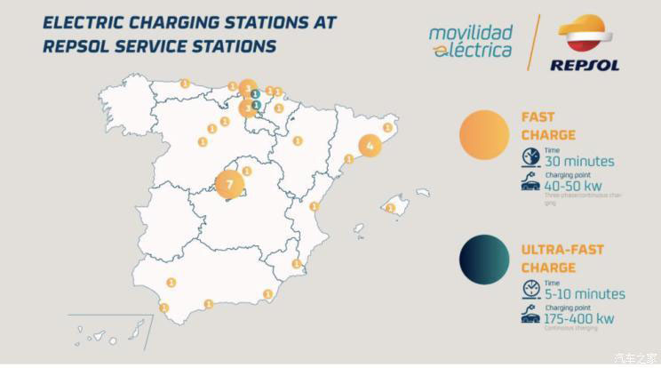 『西班牙境內(nèi)Repsol充電站分布 超級充電站目前僅有兩處』