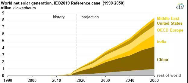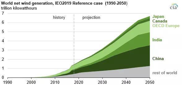 ——在可再生能源中,風(fēng)能和太陽能的發(fā)電量在2018年至2050年之間增幅最大,分別達(dá)到6.7萬億和8.3萬億千瓦時(shí);到2050年,風(fēng)能和太陽能占可再生能源發(fā)電總量的70%以上。