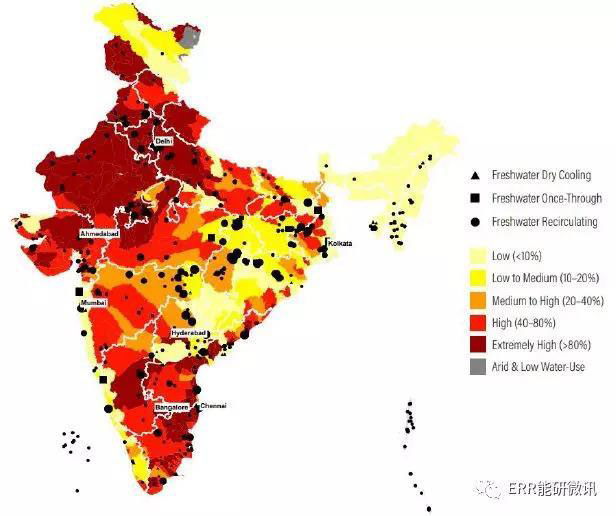 印度水冷熱電廠,按水資源壓力區(qū)域劃分