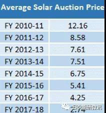 2010~2017年光伏年度競拍價(jià)格(盧比/度)