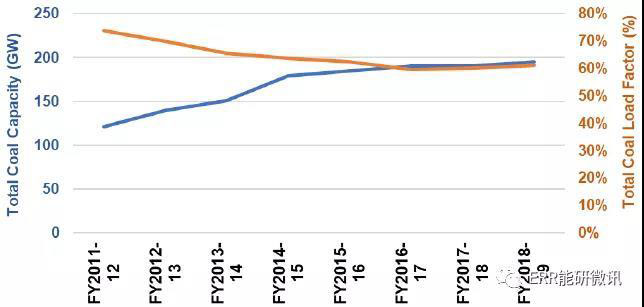 印度煤電總裝機(jī)容量(GW)及電廠負(fù)荷因數(shù)
