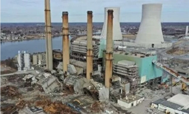 這座名為Brayton Point火電站服役已達(dá)54年,總裝機(jī)1.6GW,于2017年停運(yùn)。停運(yùn)后,Commercial Development Company (CDC)公司購(gòu)買(mǎi)了這塊兒廢棄的場(chǎng)址,并于去年進(jìn)行了一次定向爆破,拆除了兩座高聳的冷卻塔。