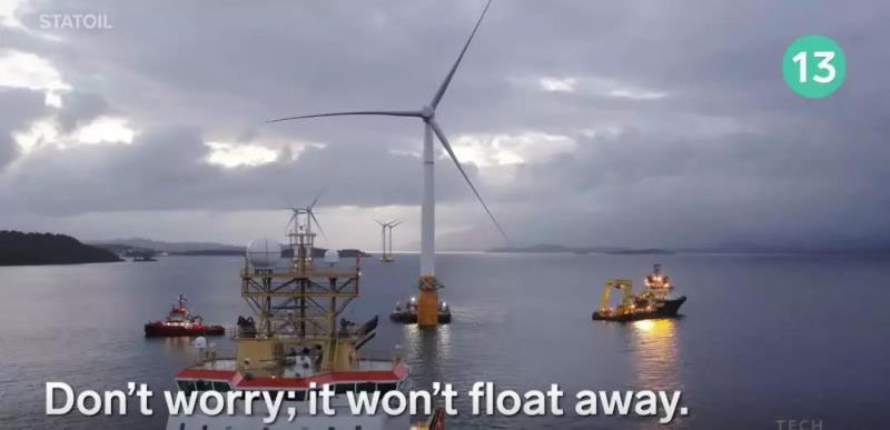 13. 這個(gè)蘇格蘭的浮動(dòng)風(fēng)電場(chǎng)是第一個(gè)這樣的。別擔(dān)心:它不會(huì)飄走。它由海床上的吸力固定器固定,一年可以為2萬(wàn)戶家庭供電。