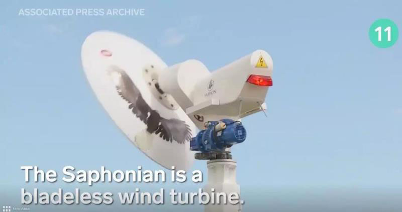 11. Saphonian是一種無(wú)葉風(fēng)力渦輪機(jī)。它模仿鳥的翅膀或魚的尾巴。并且是在船的帆之后設(shè)計(jì)的。無(wú)刀片可能比制造傳統(tǒng)渦輪機(jī)便宜......并且它不會(huì)干擾磁波或雷達(dá)波!