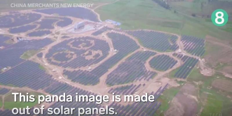 8.這張熊貓圖像是用太陽(yáng)能電池板制成的。中國(guó)的使命是建造100座這樣的熊貓發(fā)電廠。一家工廠每年可為10,000多戶家庭供電。這個(gè)想法是由15歲的Ada Li Yan-tung在2015年提出的,她建議設(shè)計(jì)將讓年輕人參與可再生能源。
