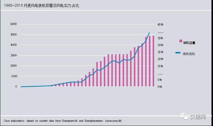 自上世紀(jì)八十年代起,丹麥的風(fēng)電行業(yè)就進(jìn)入了高速發(fā)展時(shí)期,截至2017年,風(fēng)電裝機(jī)容量達(dá)到5300MW,位于世界前列。風(fēng)電在丹麥國(guó)內(nèi)電力供應(yīng)中的比重自1980年起穩(wěn)定增長(zhǎng),1990年,這一比重為1.9%, 此后則呈急劇增長(zhǎng)趨勢(shì)。1999年,這一比重上升至10%,到了2015年的風(fēng)電占丹麥電力供應(yīng)的比例達(dá)到43.6%,遠(yuǎn)超其他所有國(guó)家。根據(jù)丹麥政府的能源規(guī)劃,到2020年,風(fēng)電占電力供應(yīng)的比重應(yīng)當(dāng)超過50%,到2035年這一比重增至84%。到2050年,丹麥將完全終結(jié)使用化石燃料。為達(dá)到如此高的目標(biāo),丹麥政府所面臨的挑戰(zhàn)自然也不小。