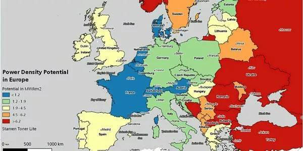 研究人員利用地理信息系統(tǒng)(GIS)的風場空間分析,確定了可適合陸上風電場選址的領土面積約占全歐洲的46%。