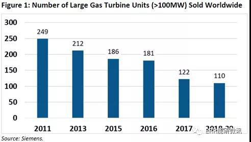 通用電氣對未來燃?xì)廨啓C(jī)銷售的賭注是一個(gè)代價(jià)高昂的錯(cuò)誤,其中包括2018年的230億美元減值費(fèi)用。這一損失基于錯(cuò)誤的假設(shè),即燃?xì)夂腿济弘姀S的需求將繼續(xù)增長。隨著全球?qū)Υ笮吞烊粴鉁u輪機(jī)的需求在2017和2018年急劇下降,通用電氣的燃?xì)廨啓C(jī)組銷量同比下降60%,從2017年的102個(gè)降至到2018年的42個(gè)。