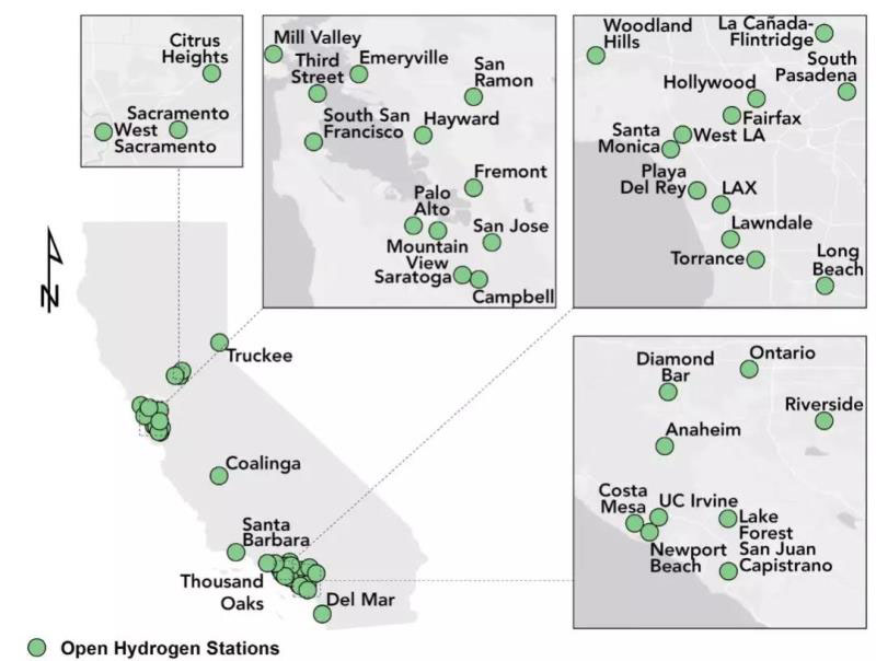 (加州當前加氫網絡布局)